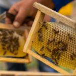 Harvesting honey at Peaceland is both an art and a science. The process takes up to 120 days, and farmers carefully ensure they take only what is needed, leaving enough honey for the bees to feed on.